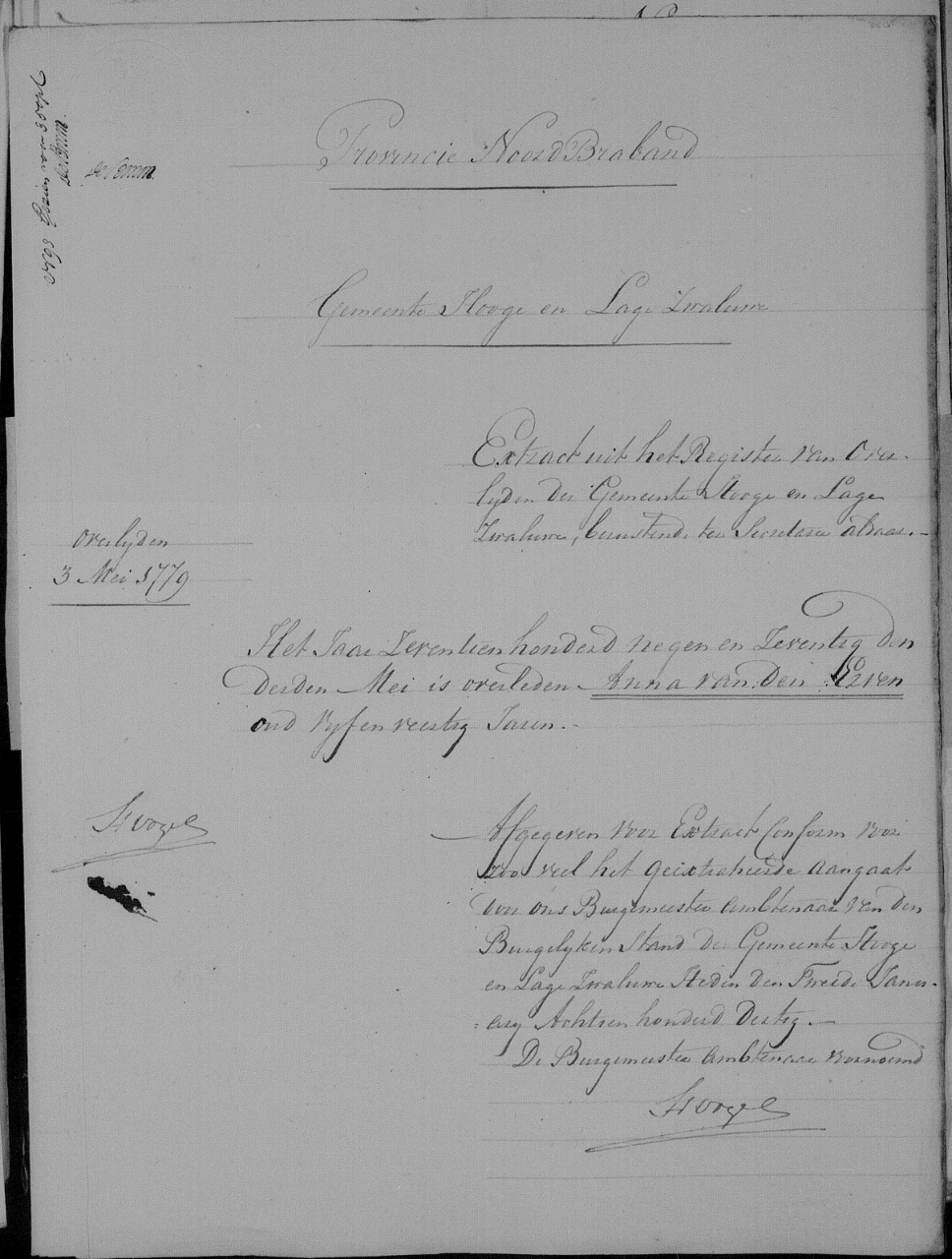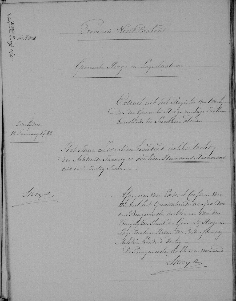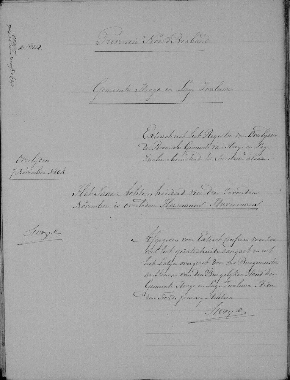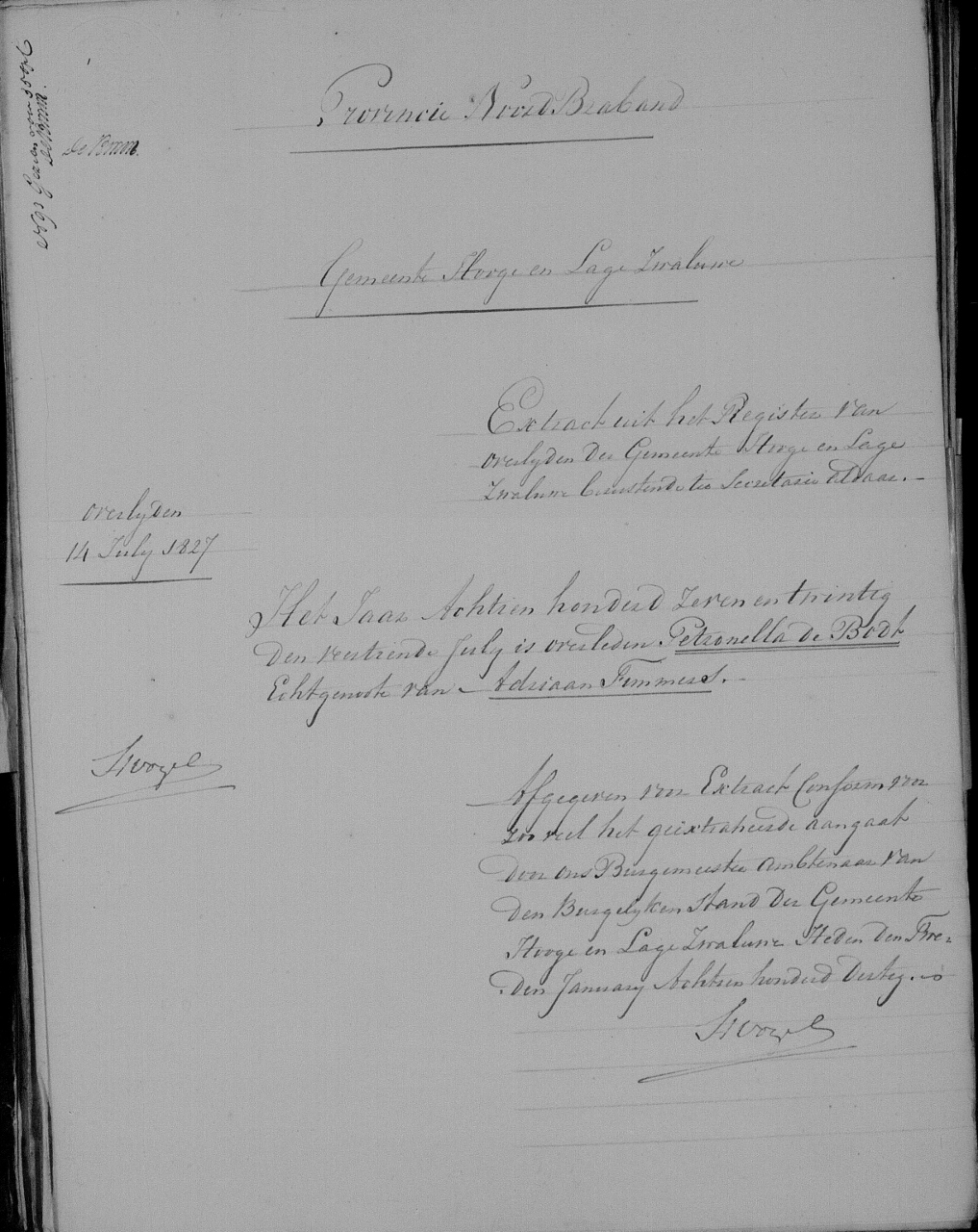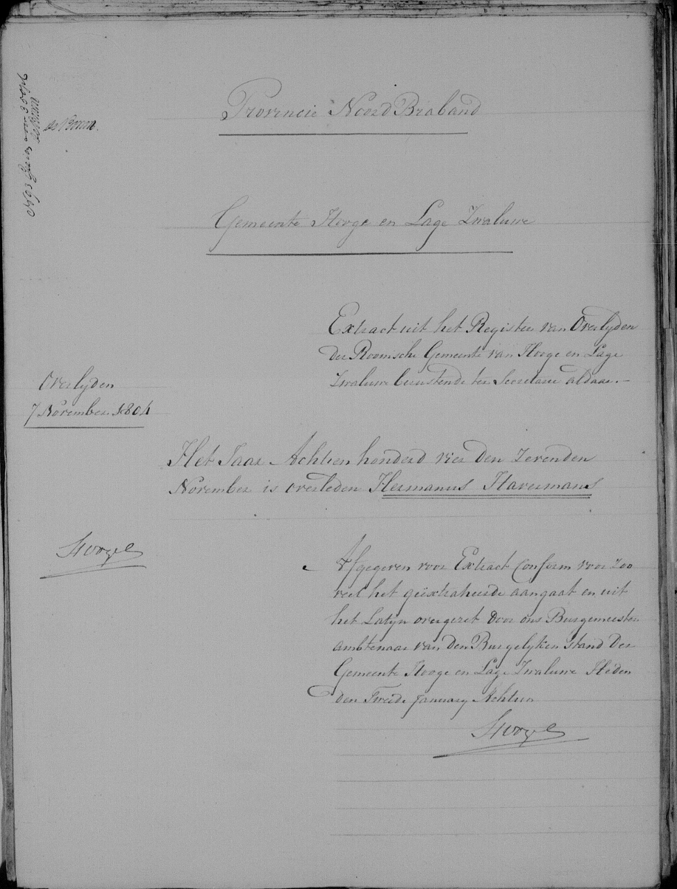 Acte van Bekendheid / Extract Dood-register H&L Zwaluwe (Joannes Oijen)