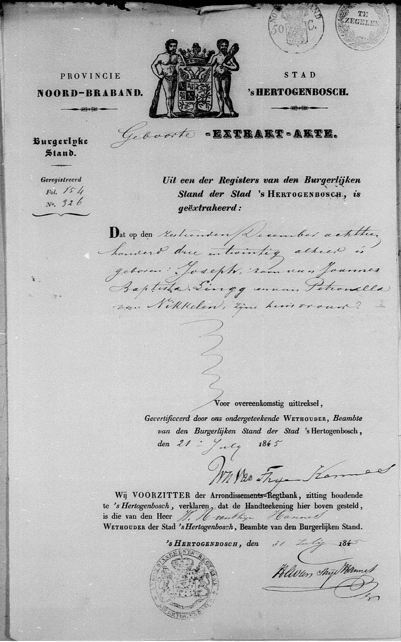 Geboorte op 15-12-1823 in 's-Hertogenbosch