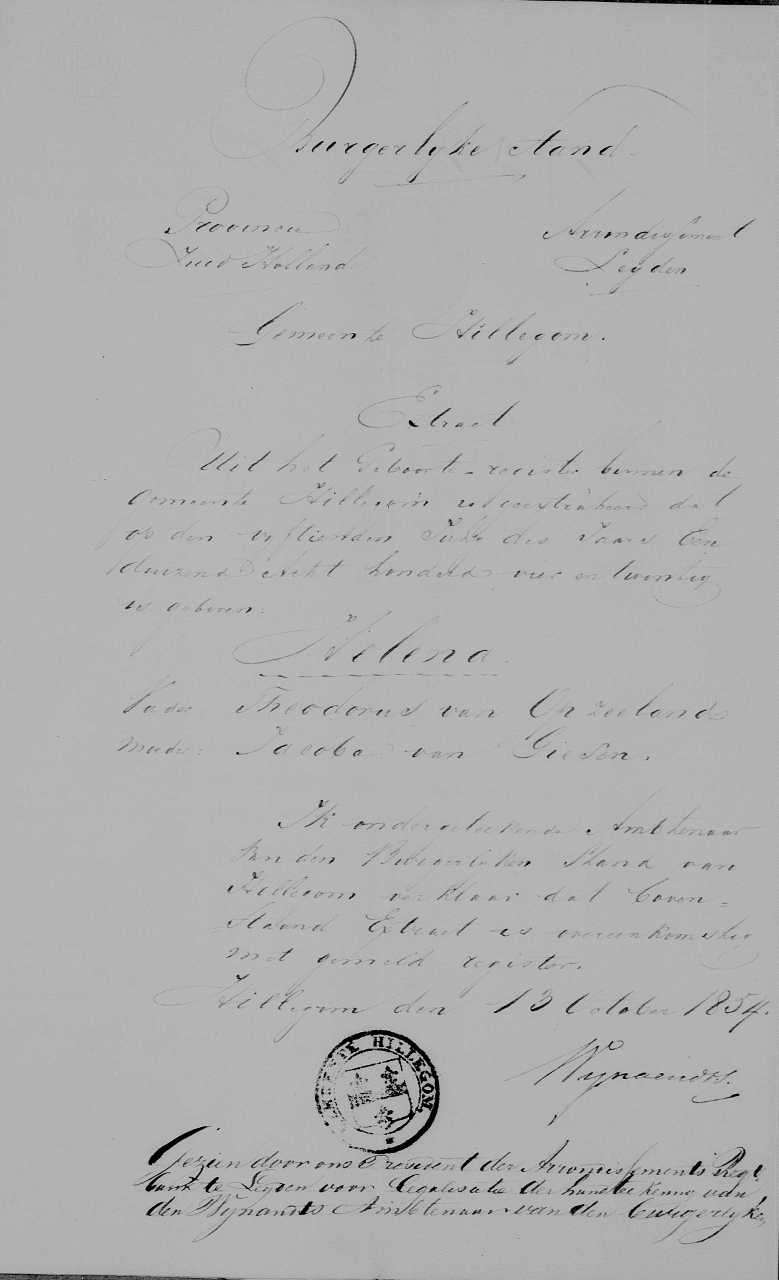 Extract Geboorte register Hillegom