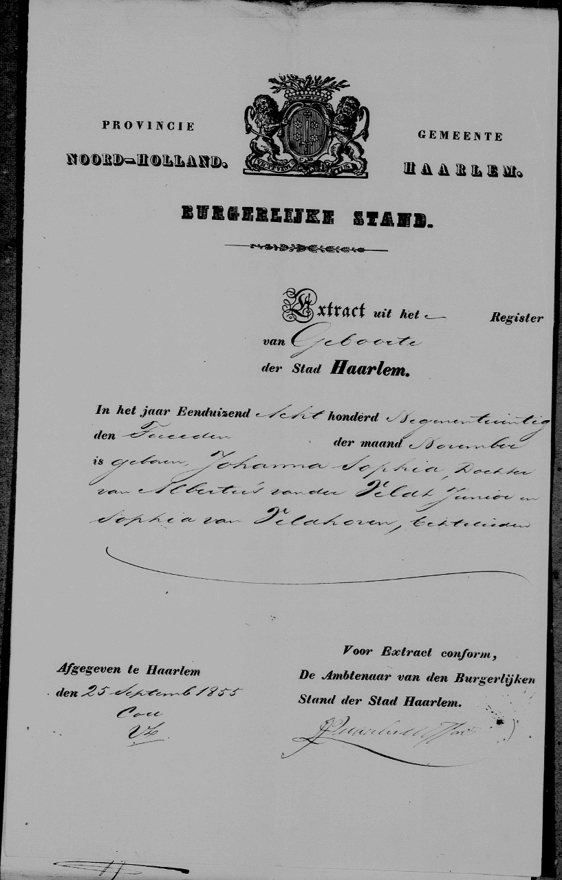 Extract Geboorte register Haarlem